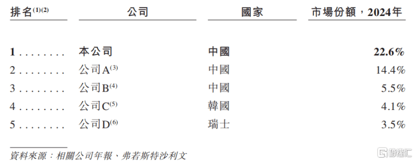 根据弗若斯特沙利文的资料,以2024年营业收入计,浙江荣泰在新能源领域云母产品市场中位列全球第一,市场份额为22.6%;在中国市场排名第一,市场份额为14.1%。