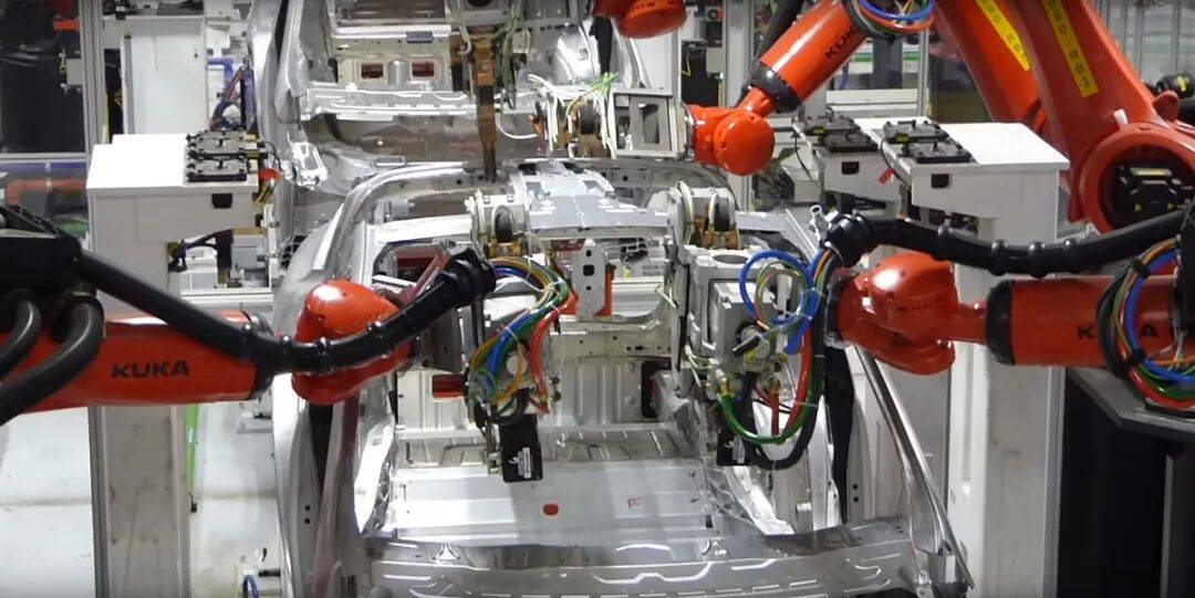 费利蒙工厂的帐篷车间里,机器人焊接臂经常把零件焊错位置,电池模组组装线套组装。