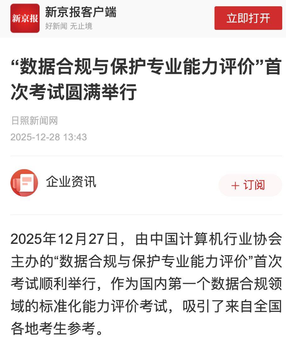 为应对日益增长的数字经济人才需求,推动数据合规与保护领域的专业化建设,国内首个专注于数字化人才培养的“数字人才培养工程”已于近期全面启动。该工程旨在通过系统化的课程设计与实战化考核,为社会输送具备前瞻视野和实操能力的数字专业人才。作为该工程的重要组成部分,“数据合规与保护专业能力评价考试”也同步面向社会各界开放报名。该考试内容涵盖数据治理框架、数据安全技术、合规管理体系、数据要素市场规则等多个维度,重点考察从业者在实际业务场景中识别风险、制定策略、落地执行的能力。